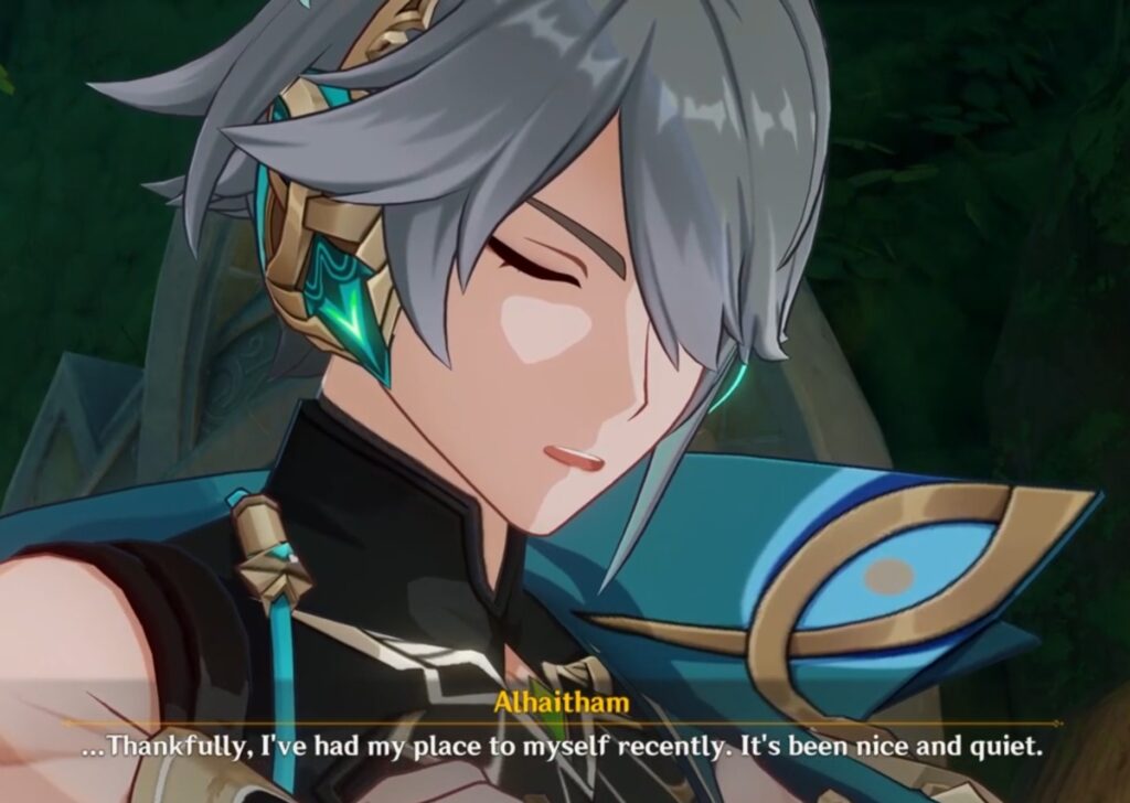 This voice line is the first time Alhaitham mentions not living alone. Dehya sounds surprised at Alhaitham rather random comment, prompting fans theorize, that this is an instance of Alhaitham sulking or thinking out loud. Especially with the way he deflects right after that.