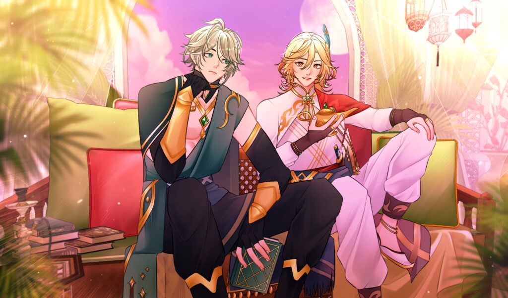 A Visual Novel fangame created by @CheeseCakewpiz1. It feautures not only Alhaitham and Kaveh, but also has stories featuring Cyno and Tighnari.